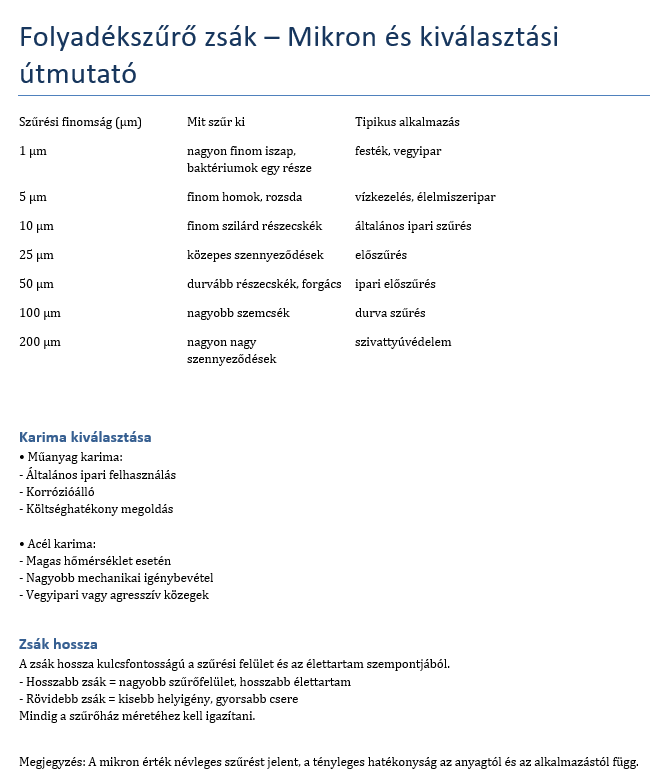 Folyadékszűrő zsákok kiválasztásának szempontjai